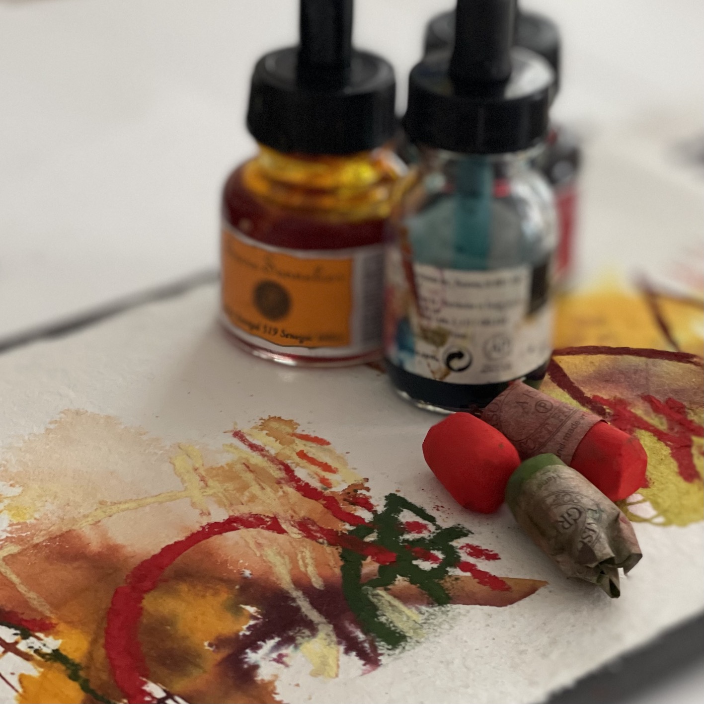 Following degrees in science, garden and landscape design I spent several years as an illustrator. In the last few years I have taken further studies to become a mixed media artist. My creative practice is now focused on time spent drawing writing, painting and exploring.