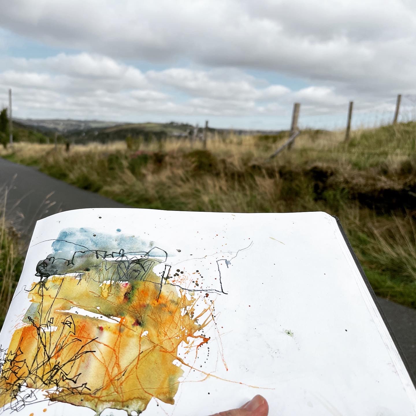 Charcoal, white chalk, plastic rubbers, ink, pencils, fine liners or fountain pen, watercolour pencils (just a couple, I use Inktense and always use dark indigo, plus perhaps a few others), woodies (just a few colours), a few pastels (Oil pastels and soft pastels) white and black/dark paint plus a few colours (acrylic, gouache and watercolour (no white and black needed for watercolour)), a mix of papers for use in collage including some patterned paper, brushes (a range of sizes from rigger to 3 inches), mark making tools: palette knife, bamboo pen, sticks, old credit card or bone folder, water spray, container for water. Gesso , a small pocket concertina sketchbook (seawhite or similar)plus at least one other cartridge paper sketchbook (eg Chunky, Seawhite of Brighton), cartridge paper, tape, Glue stick/pva. There is a detailed list with discussion in the Introduction to the course.